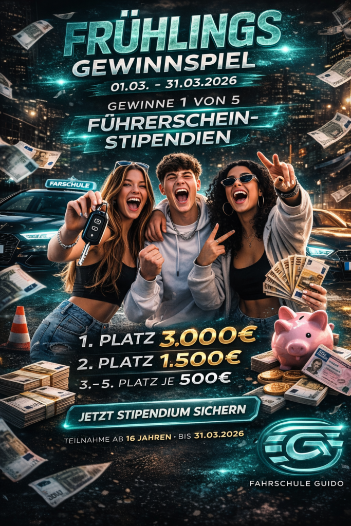 Der Führerschein ist teuer geworden.Mit diesem Gewinnspiel vergeben wir im Rahmen einer bundesweiten Aktion 5 Führerschein-Stipendien.